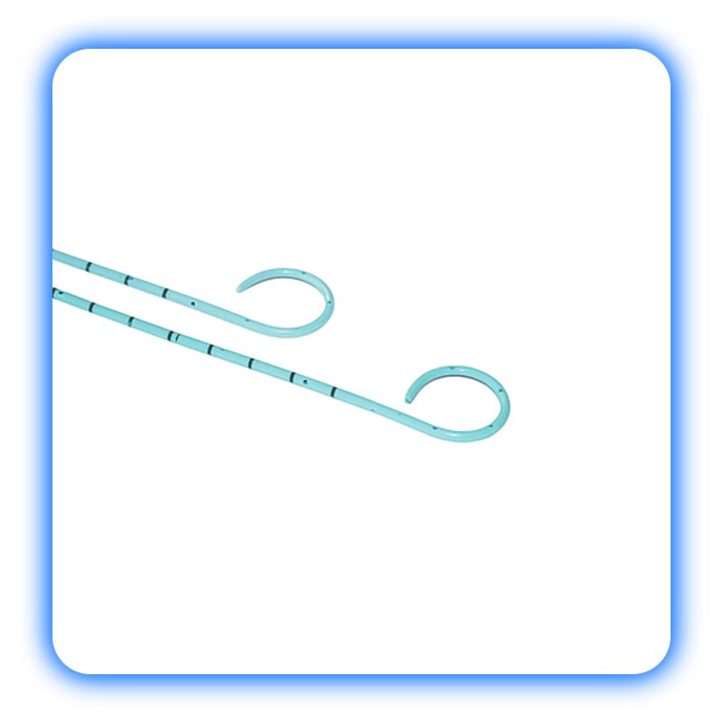 • نوک‌ها: دو انتهای «pigtail / J» برای فیکساسیون در لگنچهٔ کلیه و مثانه؛ برخی با نوک بسته (closed tip) یا با سوراخهای تخلیه متعدد.