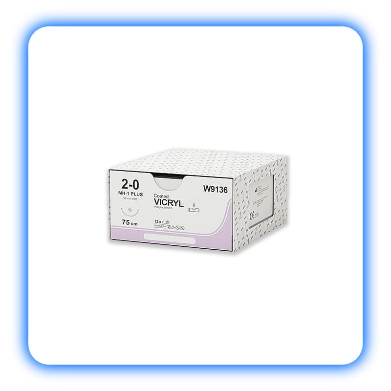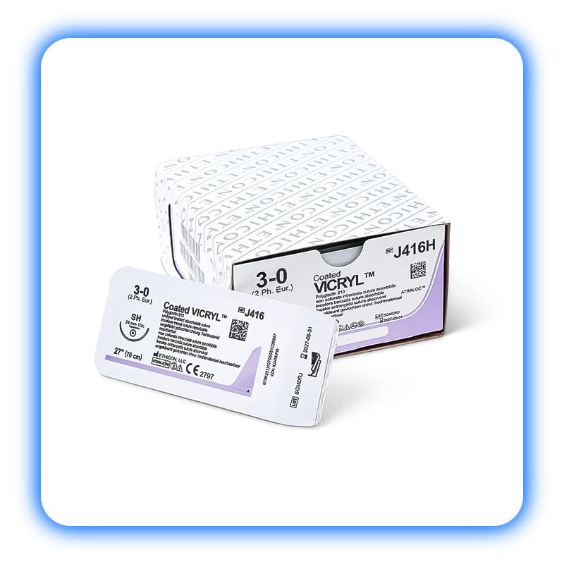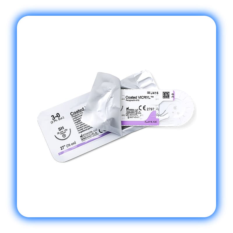 • Vicryl معمولی: نخ جذبی استاندارد چند رشته‌ای که برای اکثر جراحی‌های عمومی مناسب است.